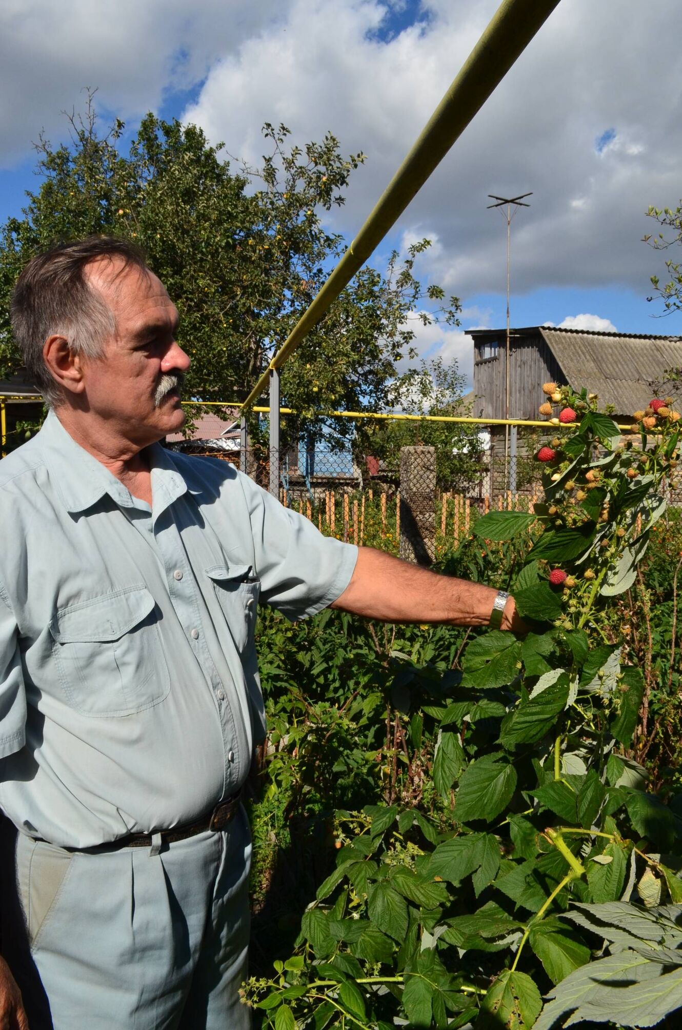 Ні, я взагалі спершу був помічником машиніста в Конотопі. Коли чимось займаюся, то поринаю у справу з головою. Першим захопленням були рибки. Усе в хаті було заставлене акваріумами. Років двадцять продавав їх на місцевому ринку. Та, коли дізнався, що маю цукровий діабет, ні мерзнути, ні нервувати не можна, змушений був покинути цю справу. Любов до садівництва — від батька. Колись він захоплювався усілякими новими видами плодових дерев. Досі в саду росте його груша «Бера», яку привіз з Трускавця, виноград. Він один на вулиці виписував цілу пачку газет. Його все цікавило: огірки, помідори, груші, яблука. Мріяв знайти та посадити актинідію. Тепер вона росте у мене. Це така невеличка ягідка, смак якої дуже віддалено нагадує аґрус з нотками ананаса. Також мріяв про жимолость, тепер у мене сім кущів на городі. Маю і заповітну ожину. Для мене було важливо посадити ці рослини в пам’ять про батька.