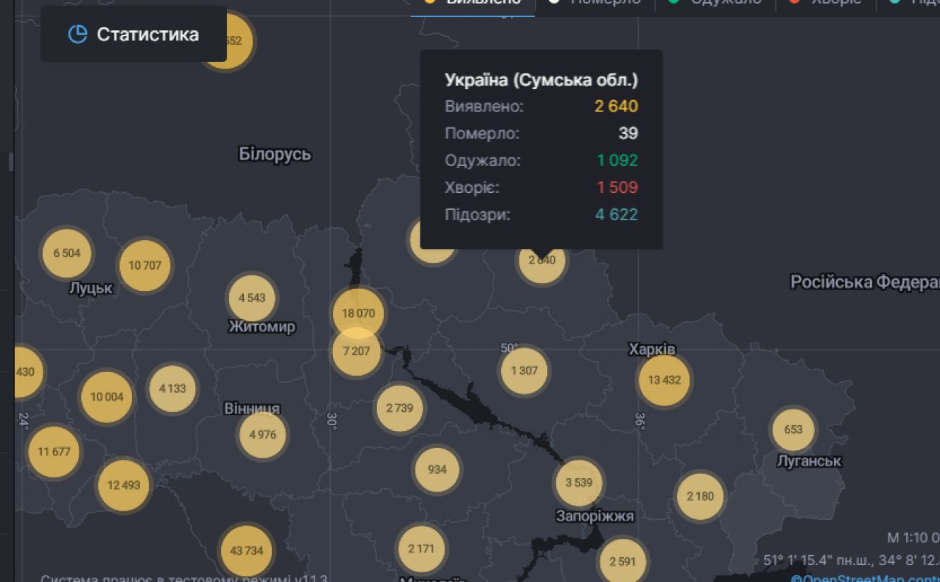 Станом на ранок 16 вересня в області виявлено 2640 випадків COVID-19 (+87 за добу).