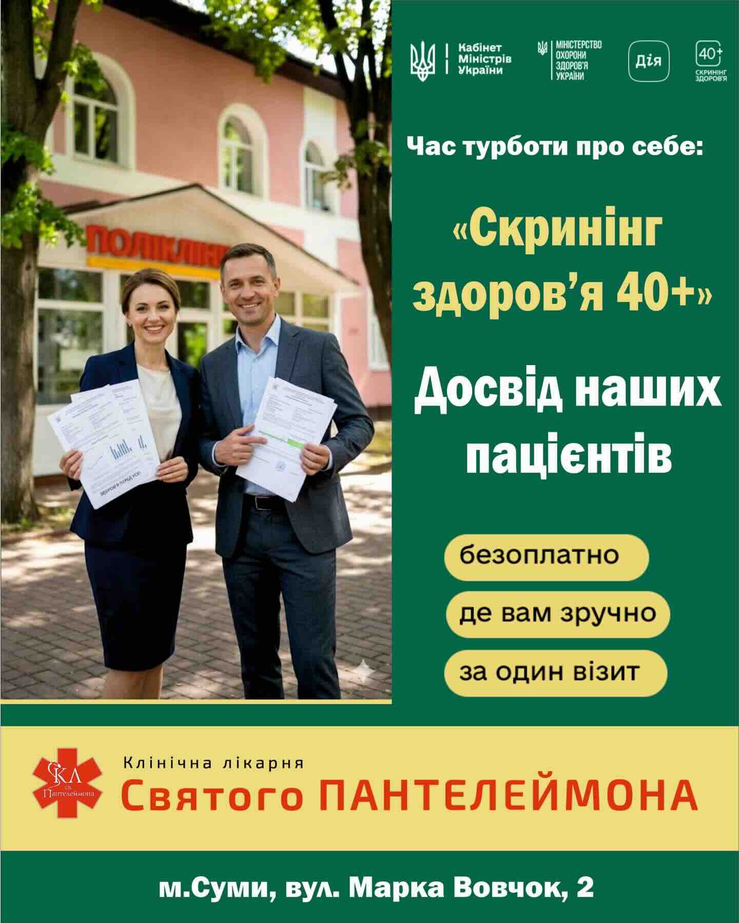 Чи варто витрачати час на візит до лікаря, якщо ви почуваєтеся абсолютно здоровим? У Сумській Клінічній лікарні Святого Пантелеймона переконані: своєчасна профілактика рятує життя. Завдяки системній роботі директора медзакладу Володимира Поцелуєва, у лікарні успішно реалізується програма «Скринінг здоров’я 40+», яка допомагає сумчанам виявляти приховані загрози та зберігати якість життя.