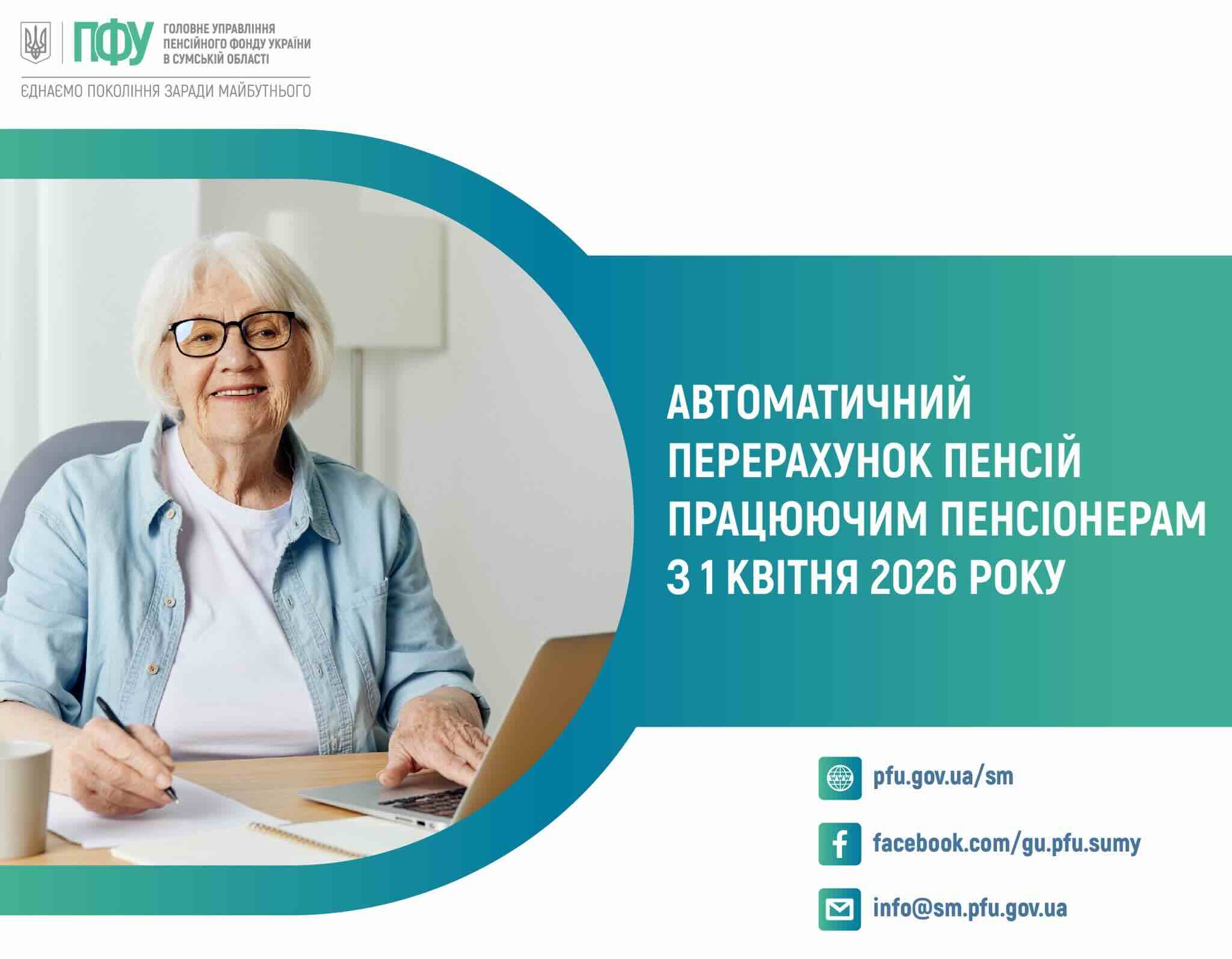 Головне управління Пенсійного фонду України в Сумській області продовжує системну роботу із забезпечення соціальних гарантій для громадян, які підтримують економіку та продовжують працювати попри поважний вік. Аби належним чином відзначити відданість справі жителів регіону, фахівці відомства з 1 квітня 2026 року здійснили масштабний автоматичний перерахунок пенсій.