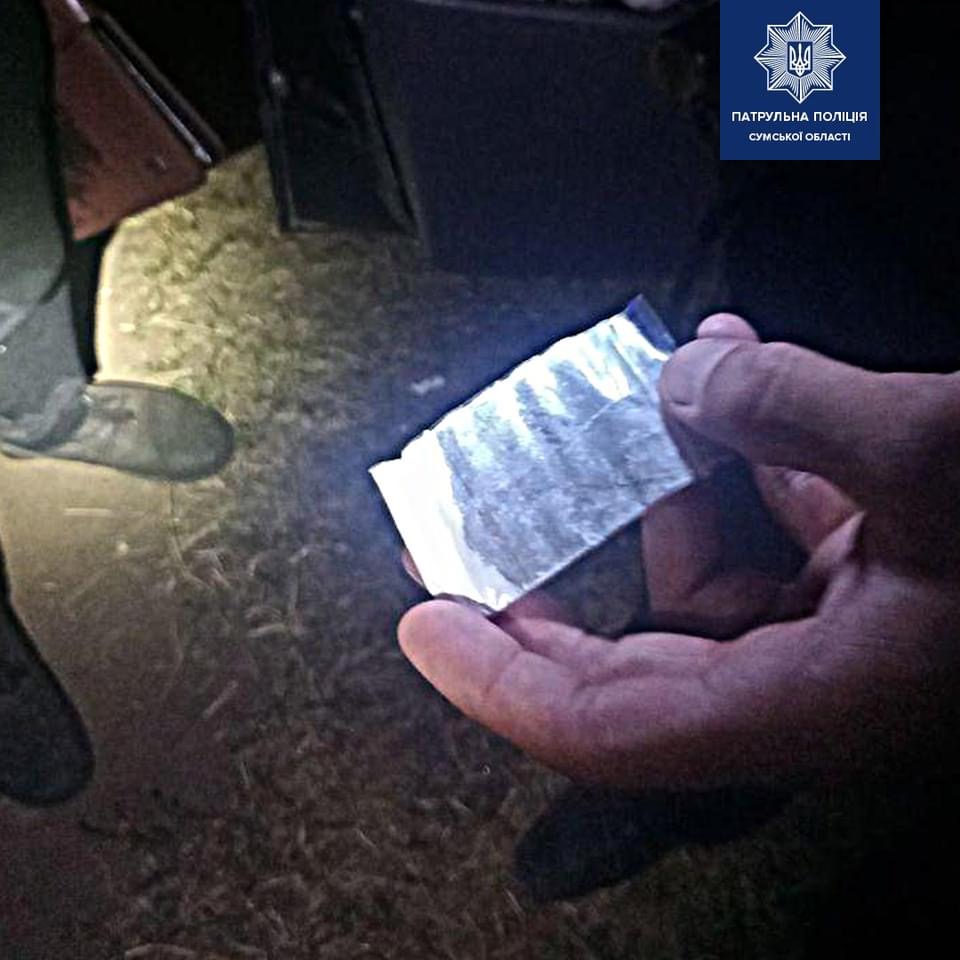 Патрульні роти ТОР виявили в автівці сумчанина речовину, схожу на наркотичну