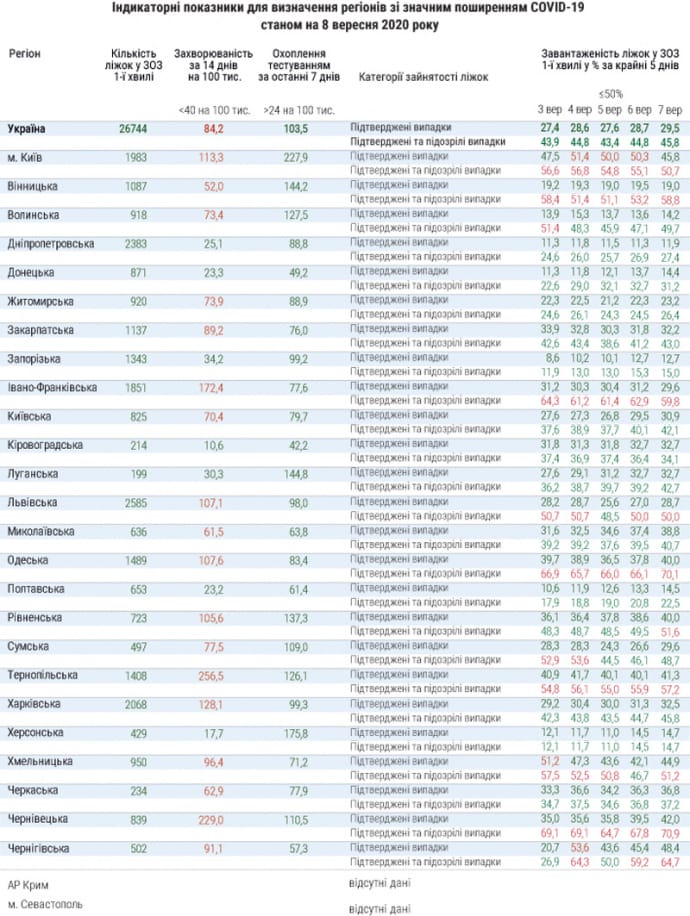 Станом на 8 вересня 17 областей України та столиця не готові до послаблення карантину.