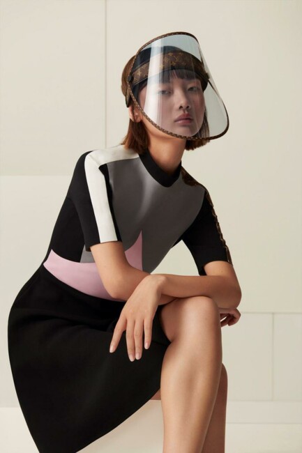 Защитная маска-экран Louis Vuitton Shield не только оберегает от коронавируса, но способна менять цвет от прозрачного к темному в течение дня, защищая владельца от солнечного света. Она также украшена золотыми вставками с выгравированным названием модного дома и эластичной повязкой на голову с монограммой. Козырек можно носить, как классическую фуражку, согласно инструкции.
