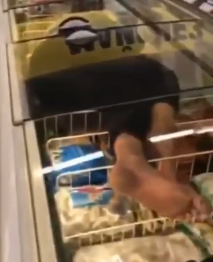 В полтавском гипермаркете покупатель снял на видео мужчину, который спит без обуви в морозилке для продуктов.